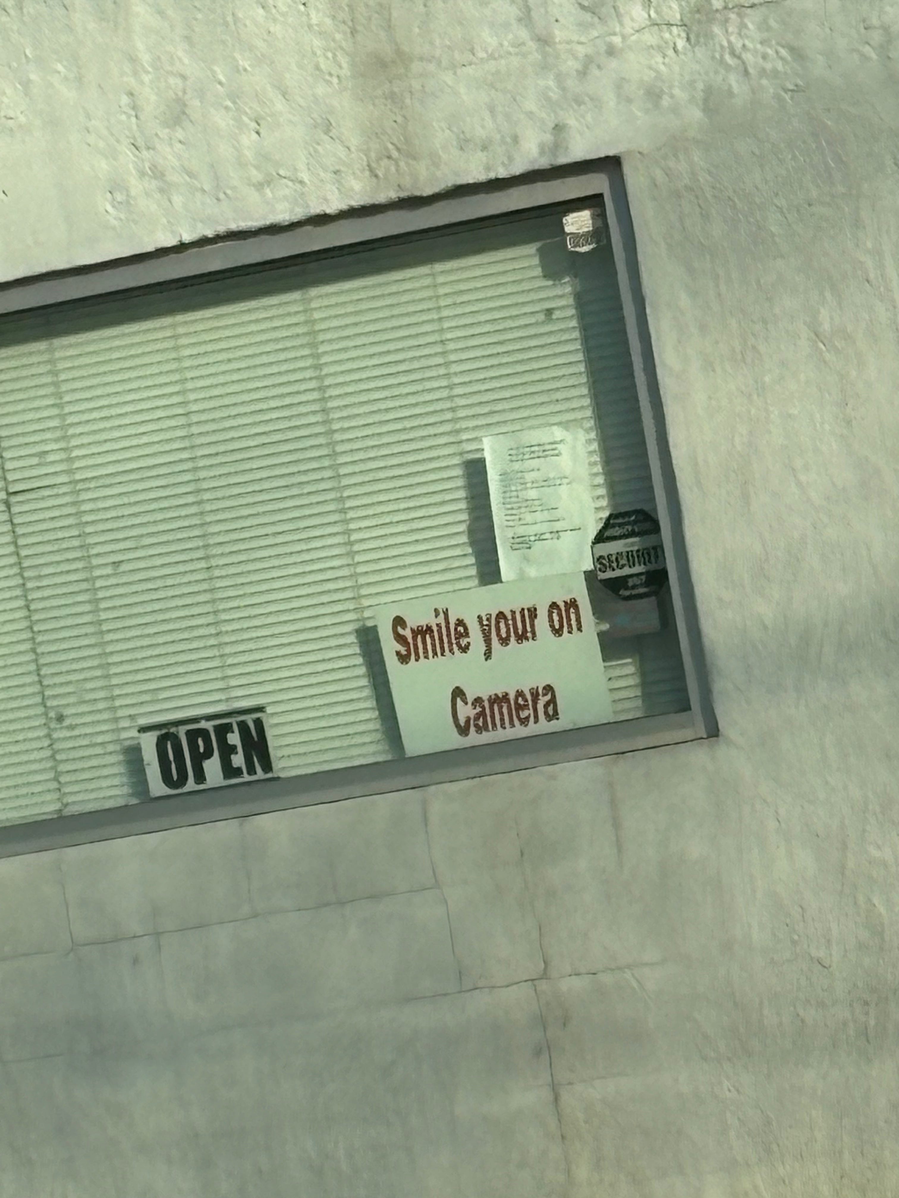 A bit over a week later, I saw a sign after I dropped my partner off at her bouldering gym that reads: “Smile your on Camera.”
